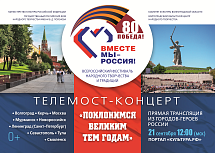 21 сентября в 12:00 в прямом эфире на портале «Культура.РФ» состоится телемост-концерт «Поклонимся великим тем годам», который станет кульминацией Всероссийского фестиваля-праздника «Вместе мы – Россия!», посвященного 80-летию Победы в Великой Отечественной войне.